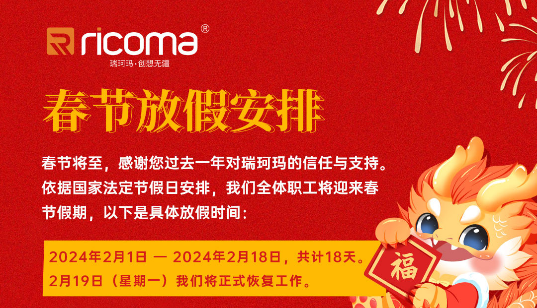 2024-01-27 MORE +春節(jié)將至,感謝您過去一年對(duì)瑞珂瑪?shù)男湃闻c支持,中國(guó)公司全體員工將迎來春節(jié)假期,祝您假期愉快、闔家幸福!