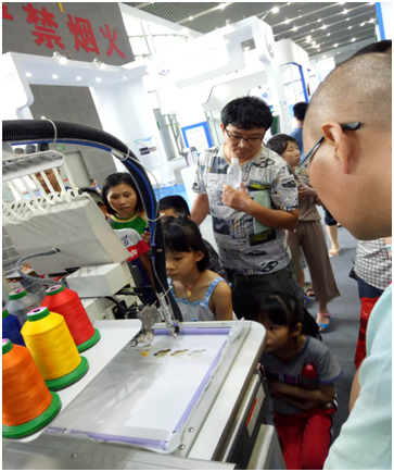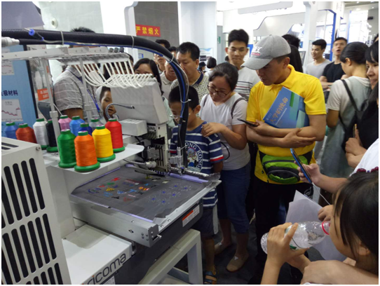在會上,瑞珂瑪和華南師范大學聯合研發的帶激光切割裝置的繡花機,吸引了眾多