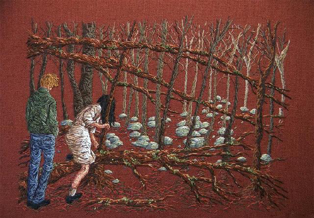 還記得,小時候,和小伙伴一起去探險的時光嗎?看這幅刺繡作品,不就像是那時的我們嗎?