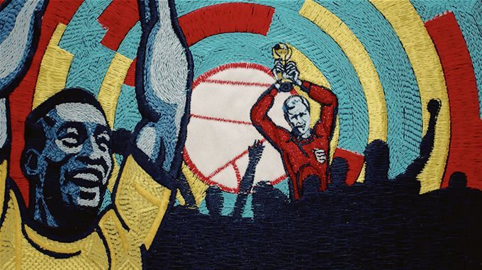 這條宣傳片采用了定格動畫的形式,將故事以刺繡圖案在掛毯上鋪展開來。鏡頭里串聯著世界杯歷史中令人難忘的