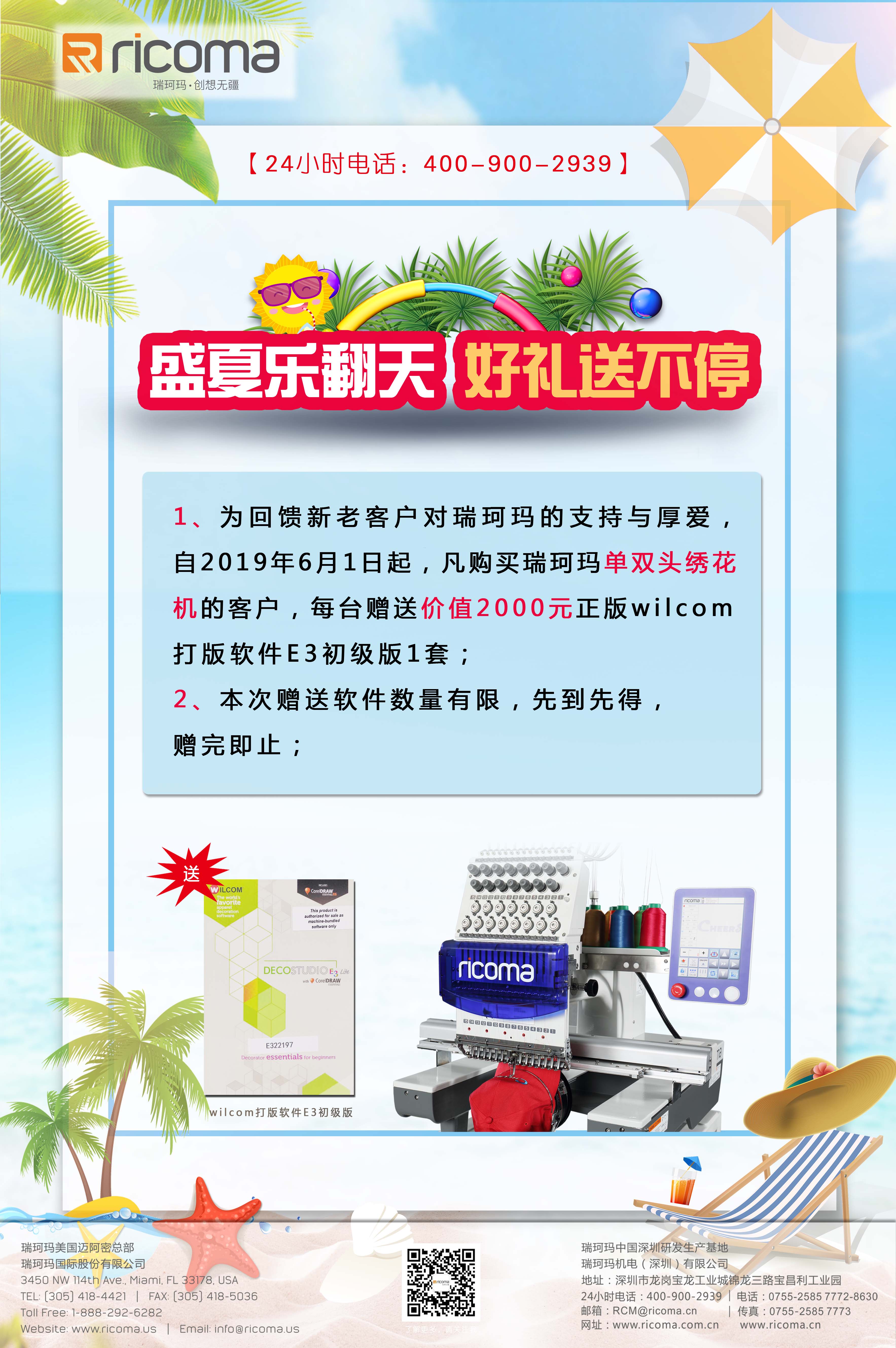 1、為回饋新老客戶對瑞珂瑪?shù)闹С峙c厚愛,自2019年6月1日起,凡購買瑞珂瑪單雙頭繡花機(jī)的客戶,每臺(tái)贈(zèng)送價(jià)值2000