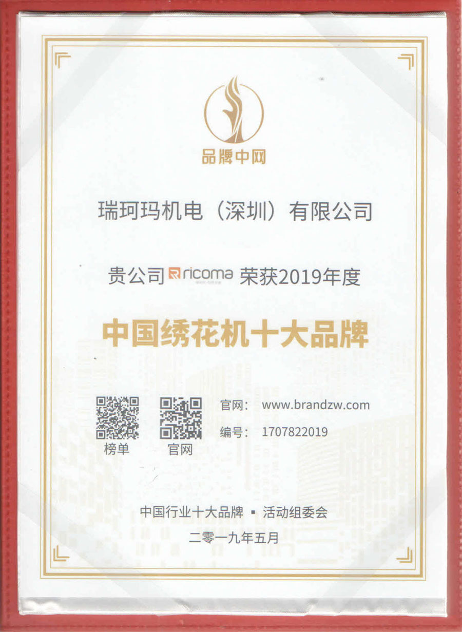 由品牌中網組織的2019年度“中國繡花機十大品牌”評選活動勝利結束,歷時三個月的評選和投票,在社會各界