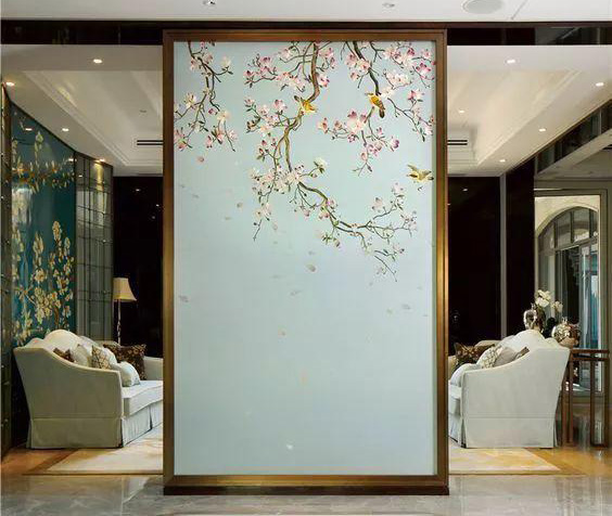 具有隔斷功能的屏風(fēng),結(jié)合刺繡元素后,極具藝術(shù)性,美觀大方。