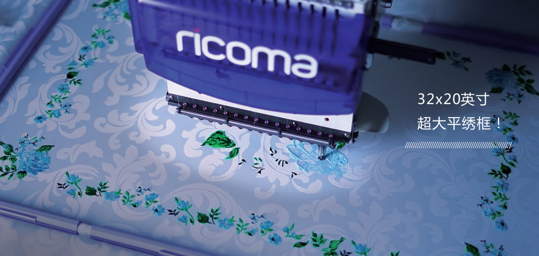 子上進行繡花;利用機器無與倫比的加寬臺板和繡框,進行大幅面刺繡。