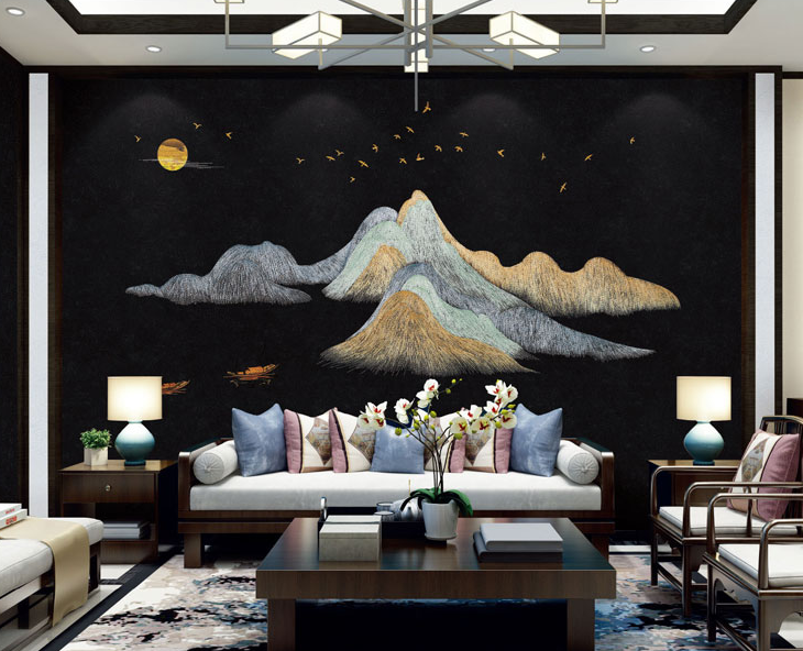 刺繡墻布是電腦繡花機使用高檔無紡布材料以及一些薄料PU,通過制版師設計花樣,以及精湛的刺繡工藝一針一線勾勒出圖案,顏色根據圖案定制,針法根據造型設計,刺繡完成后讓墻布圖案真實且更有立體美感,讓家居生活更具品質。