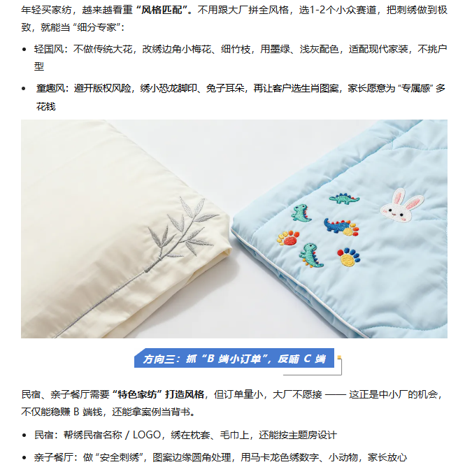 中小家紡廠突圍:3 個 “輕量化刺繡” 方向,快速提升產品溢價