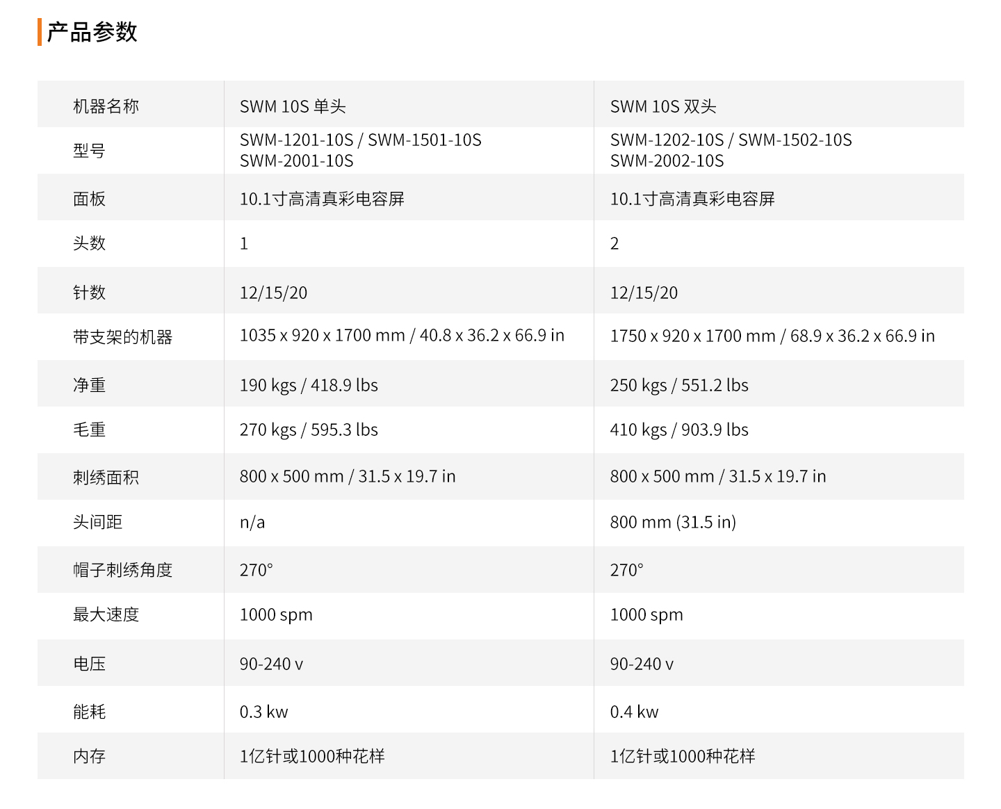機器型號 | 頭數 | 針數 | 凈重 | 刺繡面積 | 機器尺寸 |