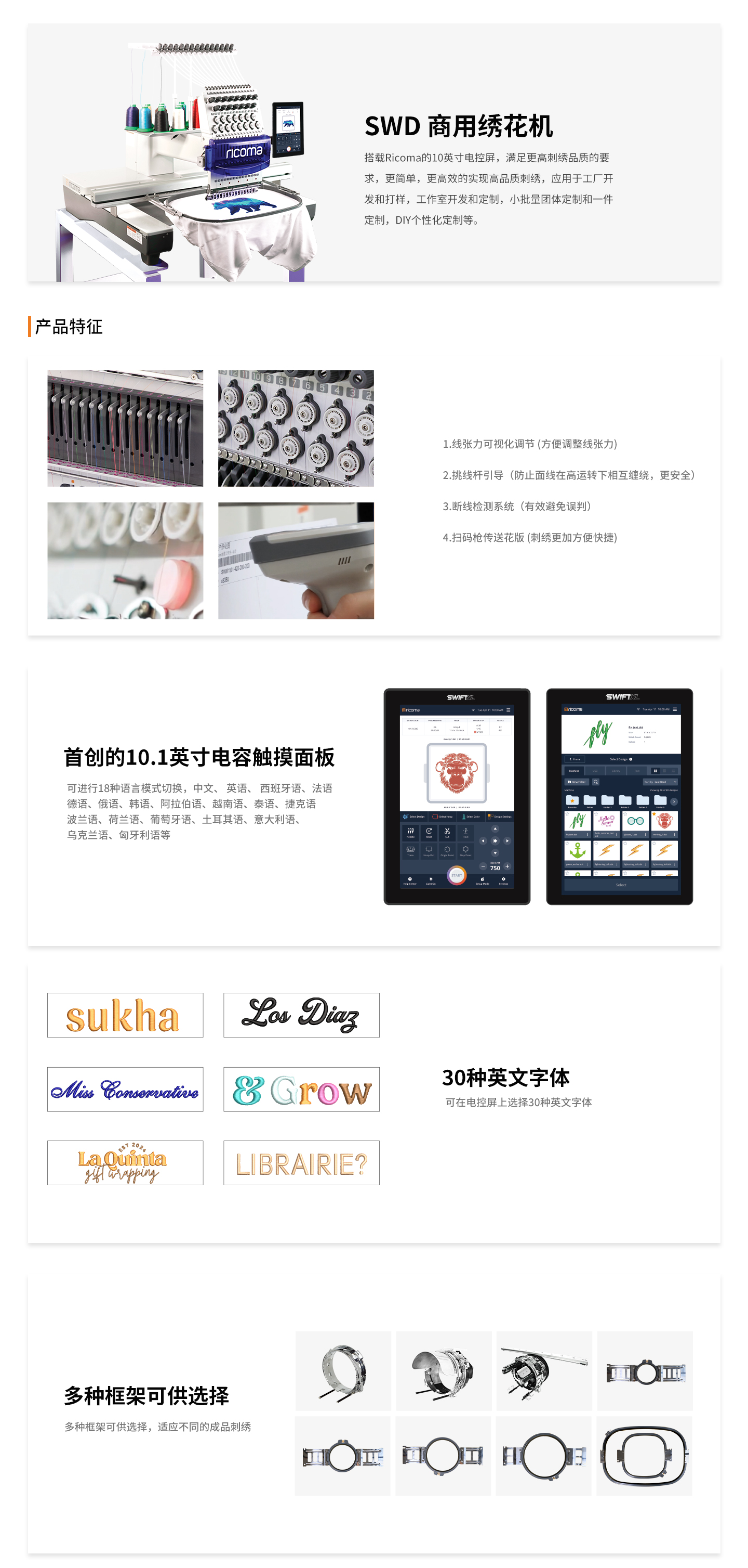 ▼ 多種繡框尺寸滿足繡花需求;
