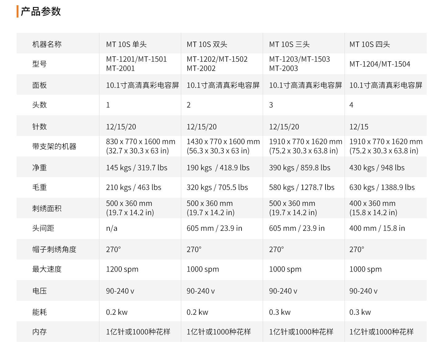 ● 1-3頭機(jī):270°廣角帽繡裝置;4頭機(jī):215°帽繡裝置;