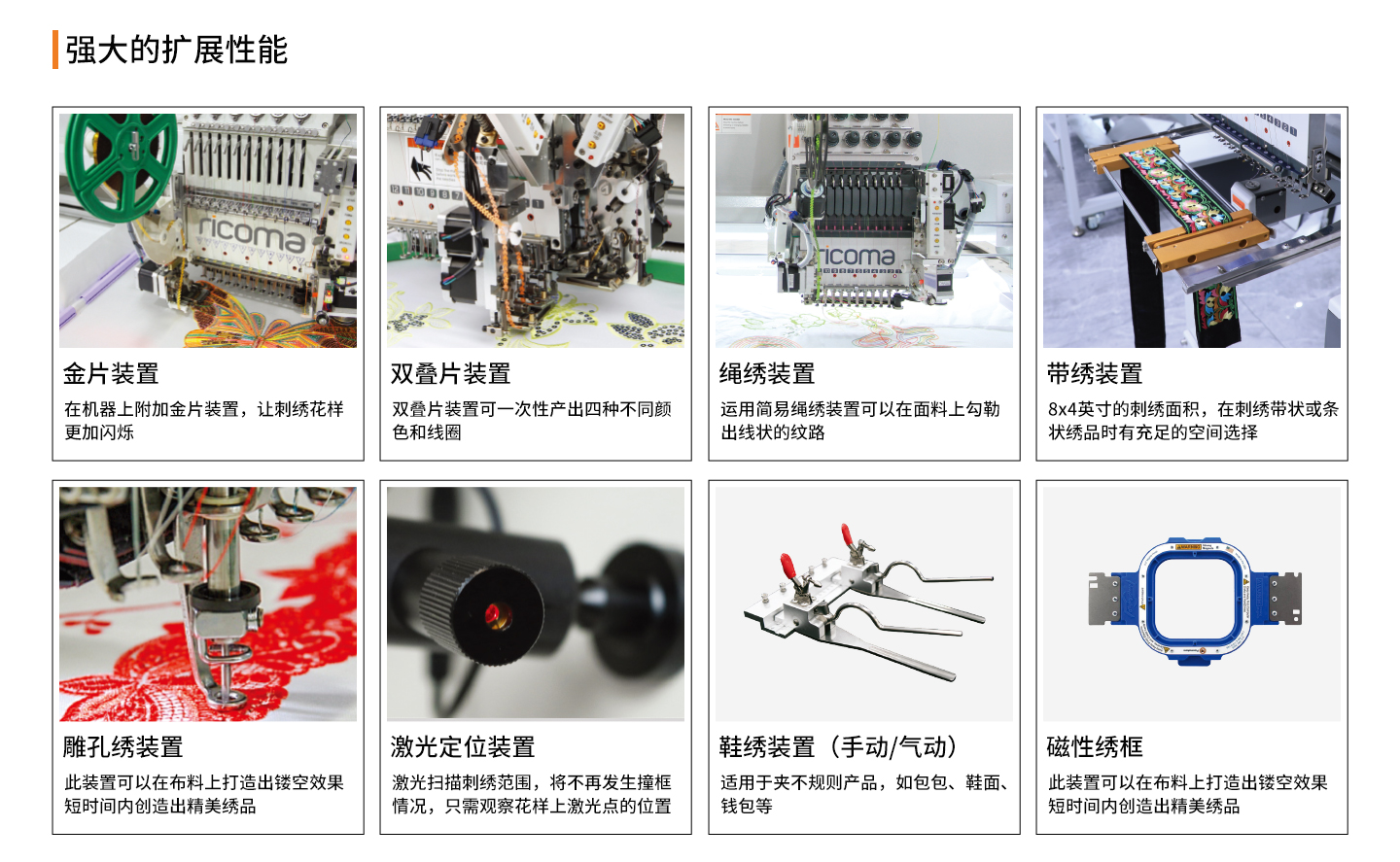 ● 選配的閉環(huán)步進電機可使3D刺繡效果更佳